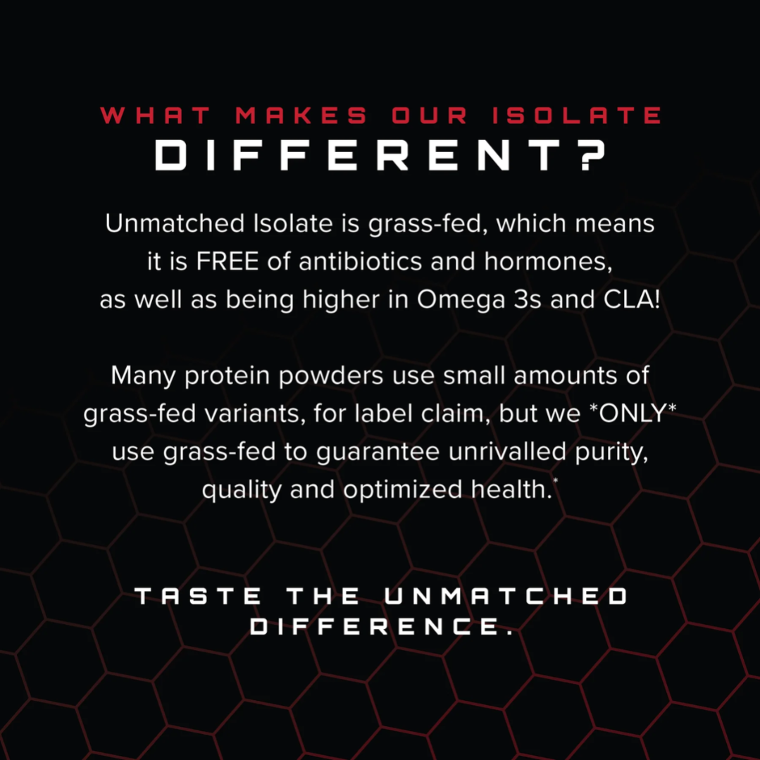 Our grass-fed whey isolate is the gold standard for unparalleled purity. It is naturally sweetened and flavored without any added fillers, antibiotics, or artificial ingredients. With a commitment to quality and transparency, Isolate delivers optimal nutrition, bridging the gap between health and performance. This protein is derived from grass-fed cows in the United Kingdom to ensure only the best quality and highest bioavailability. Every scoop supports your goals with Unmatched excellence.