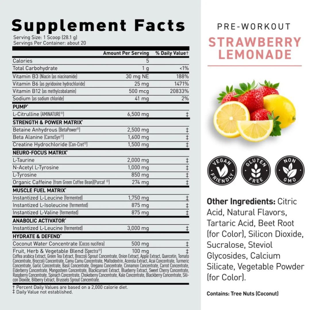 Kaged Pre-Workout brings together 16 of the world’s best ingredients at researched-backed doses so that you’ll experience improved energy, focus, endurance, muscle pumps, and strength
