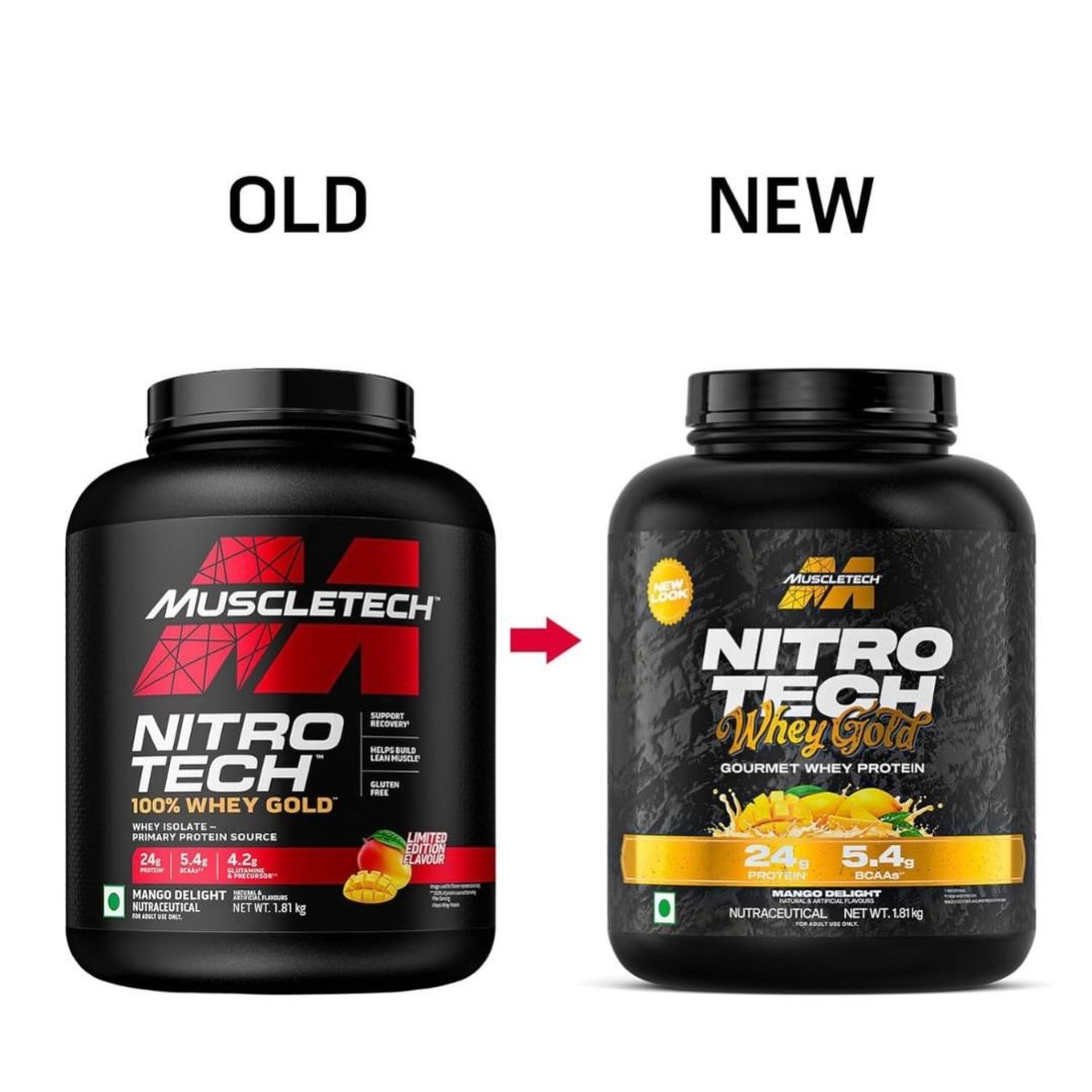 MuscleTech Nitro-Tech Whey Gold Protein Powder | 24 g Protein & 5.4 g BCAAs Per Serving | Supports Lean Muscle & Faster Recovery | Mango Delight | 1.81 kg