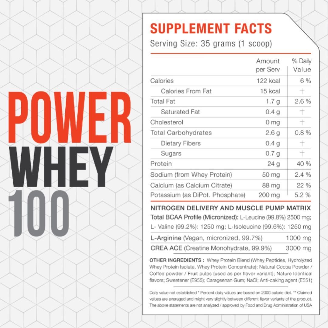 Power Whey 100 is designed for athletes and fitness enthusiasts seeking maximum muscle growth and recovery. Each serving delivers 24 grams of high-quality whey protein, crafted to provide a potent blend that supports lean muscle mass and accelerates recovery post-workout. With Nitrogen-enabled muscle building, this formula includes a powerful Nitrogen Delivery and Muscle Pump Matrix, enhancing nutrient absorption and delivering a remarkable muscle pump that fuels your workouts with unmatched energy and stamina.