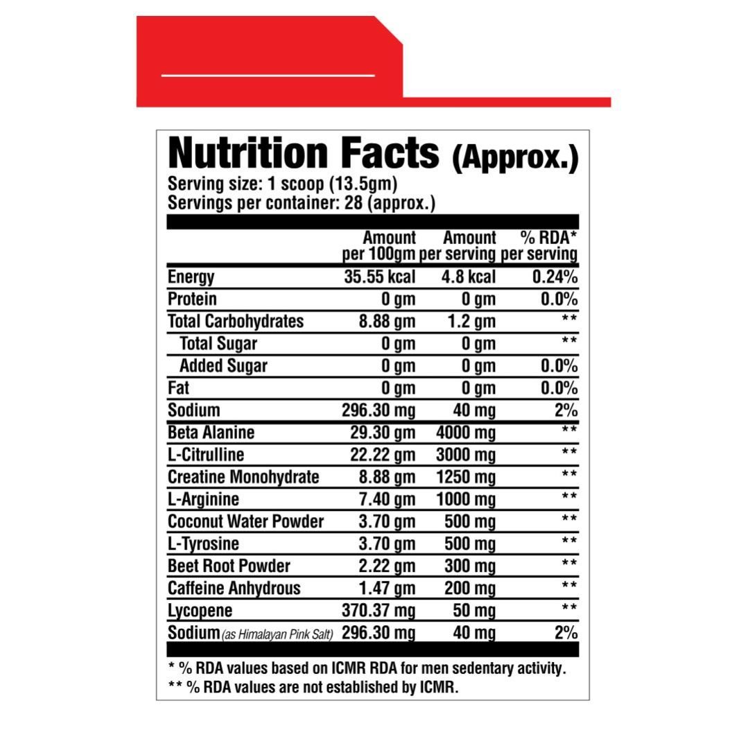 » Utilizes 1250mg creatine monohydrate† » Utilizes 500mg coconut water powder† » Focus matrix uses l-tyrosine, DMAE & lions mane extract†
