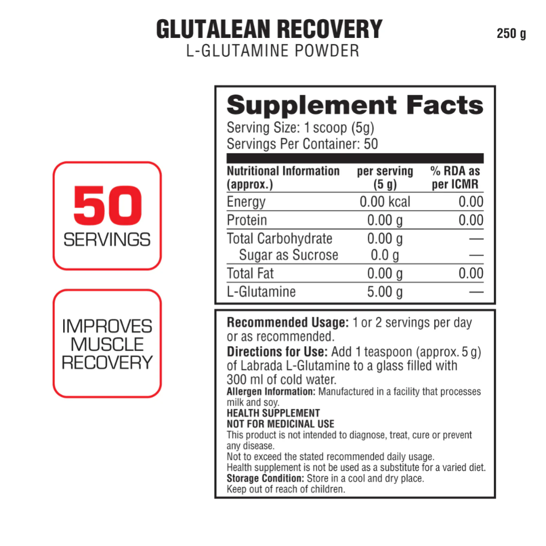 glutalean recovery | L-glutamine powder | unflavoured | 250g